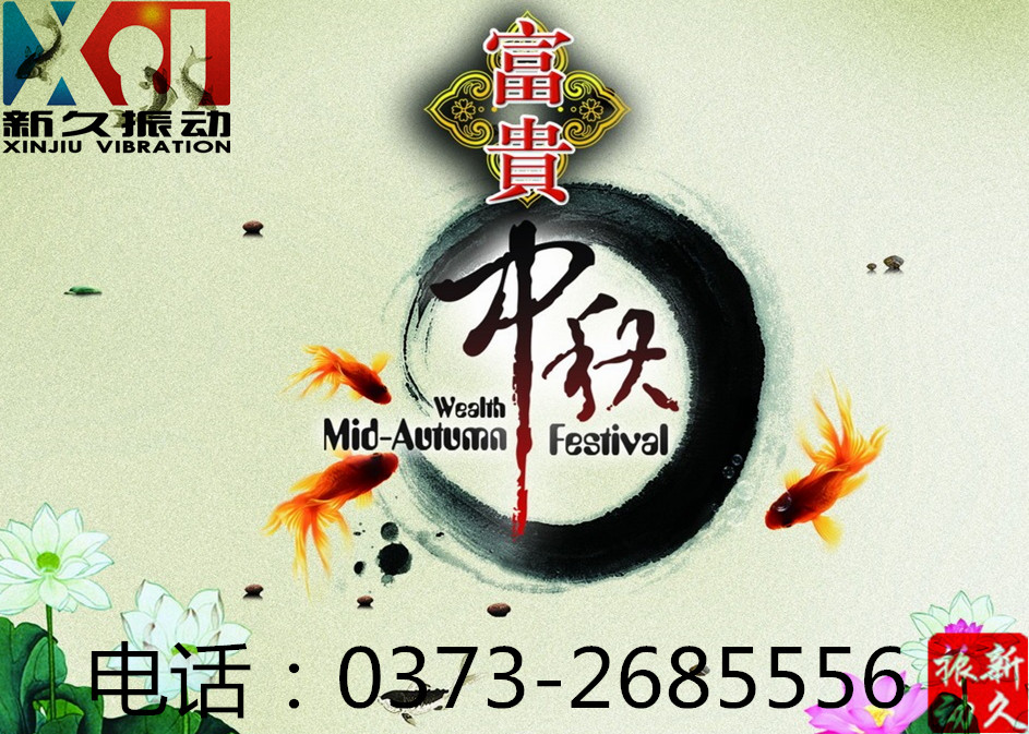 中秋節(jié)即將來臨,新鄉(xiāng)市新久振動(dòng)機(jī)械有限公司全體員工祝您和家人的事業(yè)和生活像那中秋的圓月一樣,亮亮堂堂,圓圓滿滿!福星高照,喜氣長留!祥云浮紫閣,喜氣溢朱門!簾短能留月,樓高不礙云!蘭經(jīng)香風(fēng)滿,松窗夜月圓!